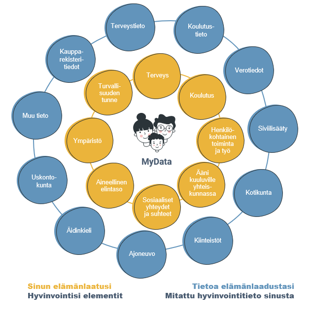Olemme ottaneet työmme pohjaksi Stiglitzin komitean hyvinvointimallin, joka on Euroopan komission hyödyntämä malli, ja joka pyrkii tarkastelemaan ihmisen hyvinvointia kokonaisvaltaisesti. Mallin mukaan hyvinvointi on moniulotteinen käsite, jonka kaikkia ulottuvuuksia, eli terveyttä, koulutusta, henkilökohtaista toimintaa ja työtä, ääni kuuluville yhteiskunnassa, sosiaalisia yhteyksiä ja suhteita, aineellista elintasoa, ympäristöä sekä turvallisuudentunnetta, tulee tarkastella samanaikaisesti.